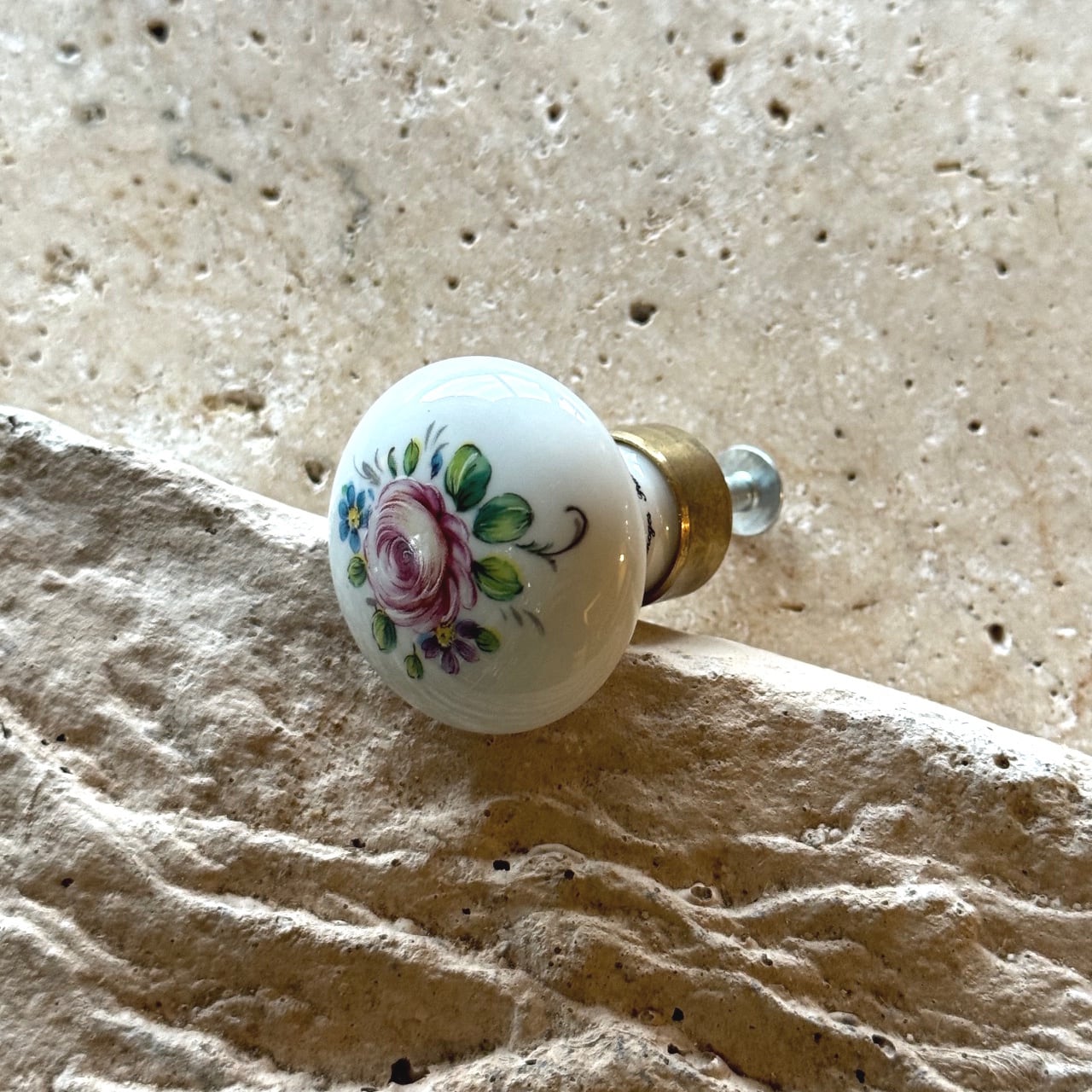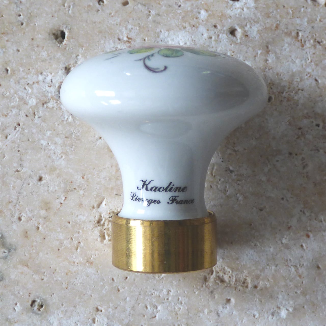 フランス、カオリンヌのオールドローズ柄(rose ancienne)の引き戸棚用小ノブ(35mm径)です。金属部分が「真鍮光沢ニスなし」です。