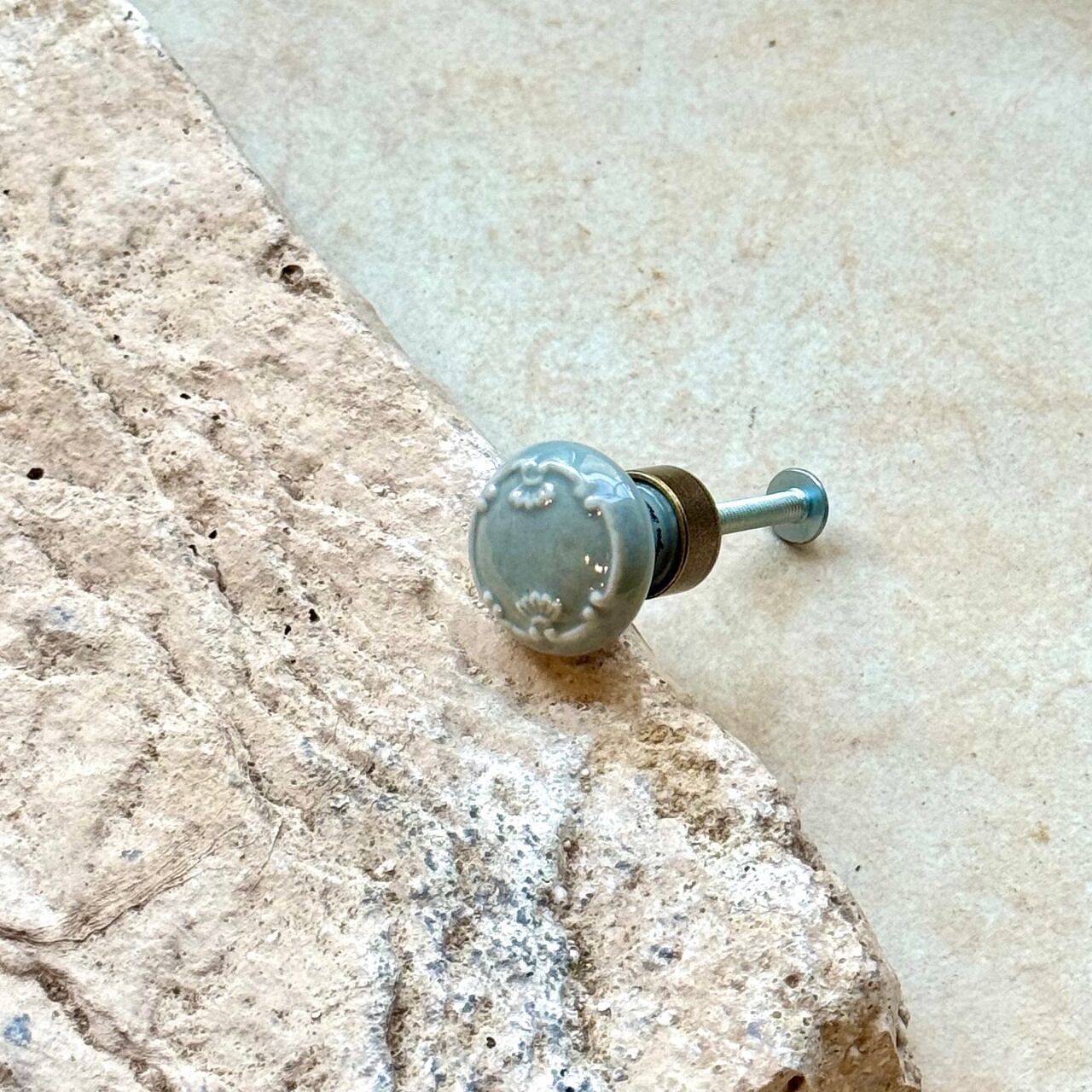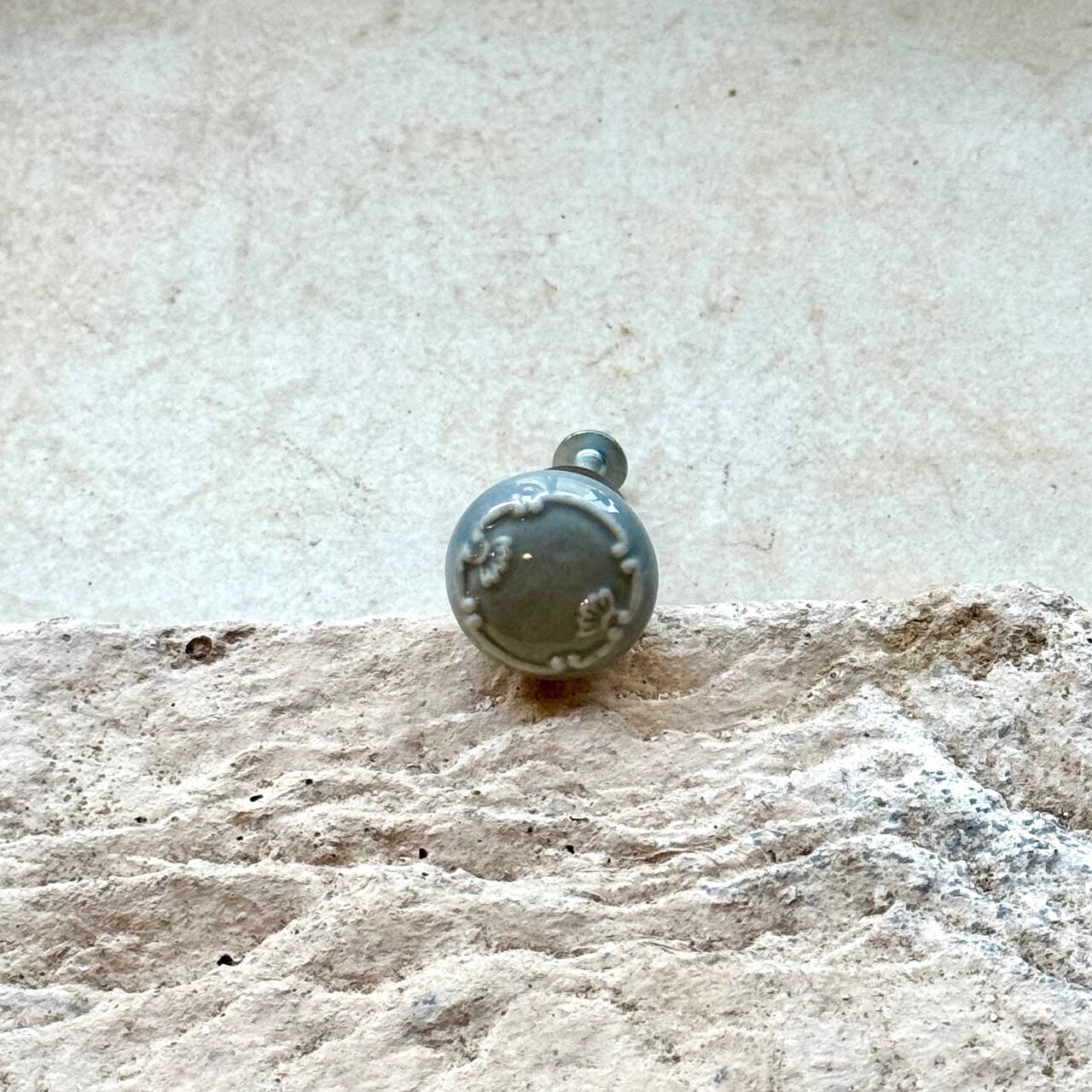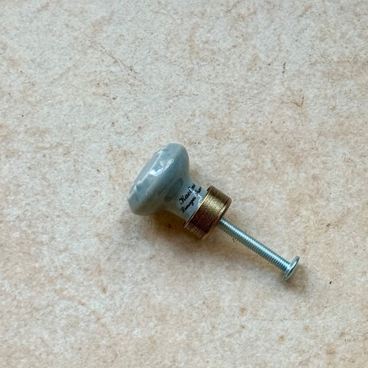 フランス、カオリンヌの引き戸棚用小ノブ(25mm径)です。陶器部分がダークグレーで金属部分が「真鍮・古味仕上げ」です。