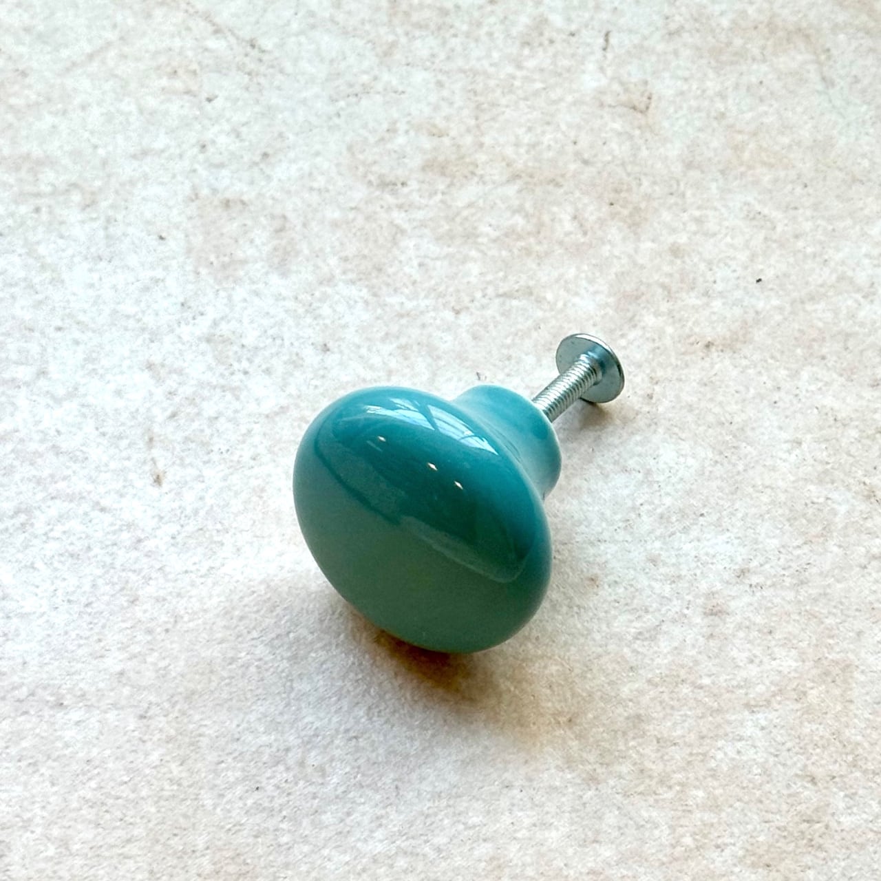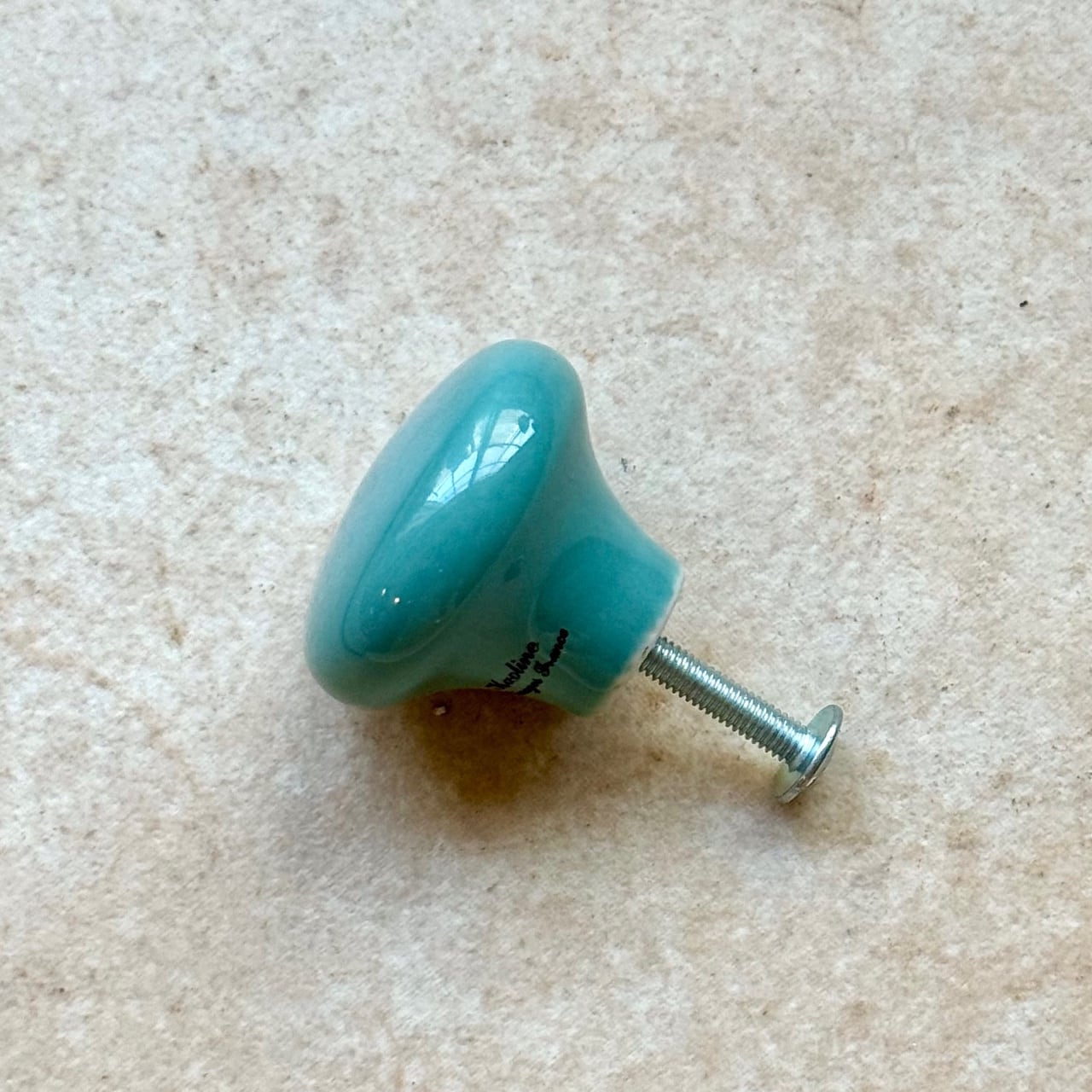 フランス、カオリンヌの引き戸棚用小ノブ ブルーグリーン(35mm径)です。
