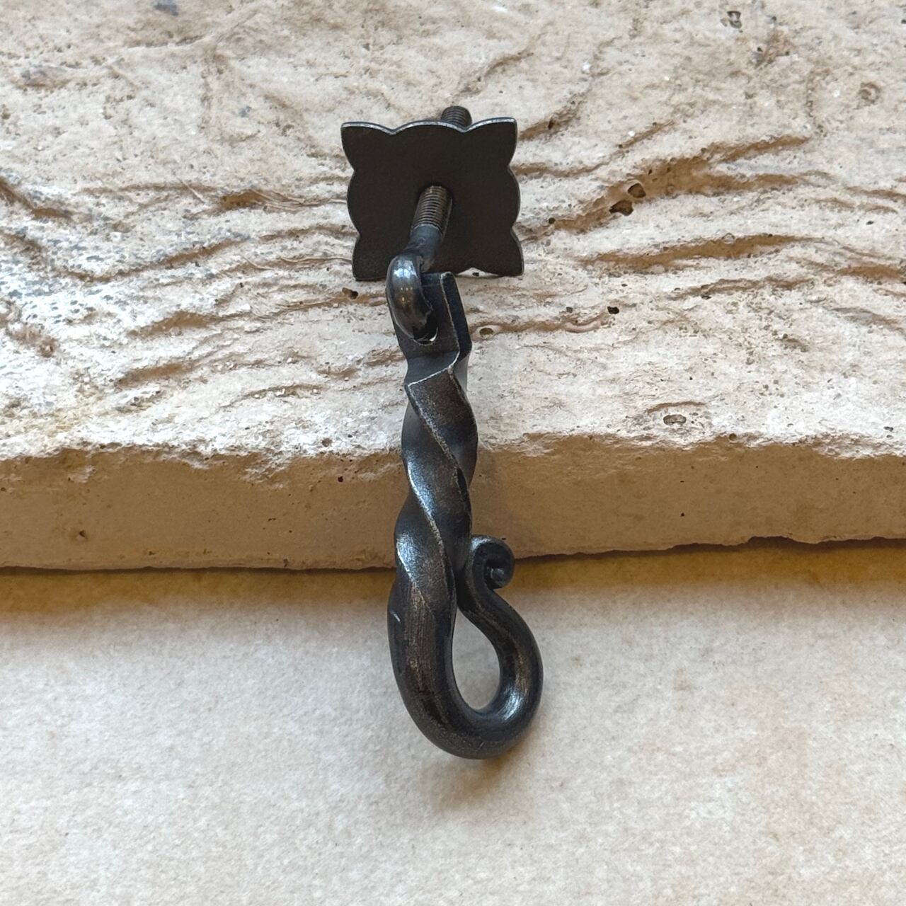 フランス、ブリオンヌの引出し・家具用取手(ブラリタイプ)・鉄・黒色錆止め仕上げです。