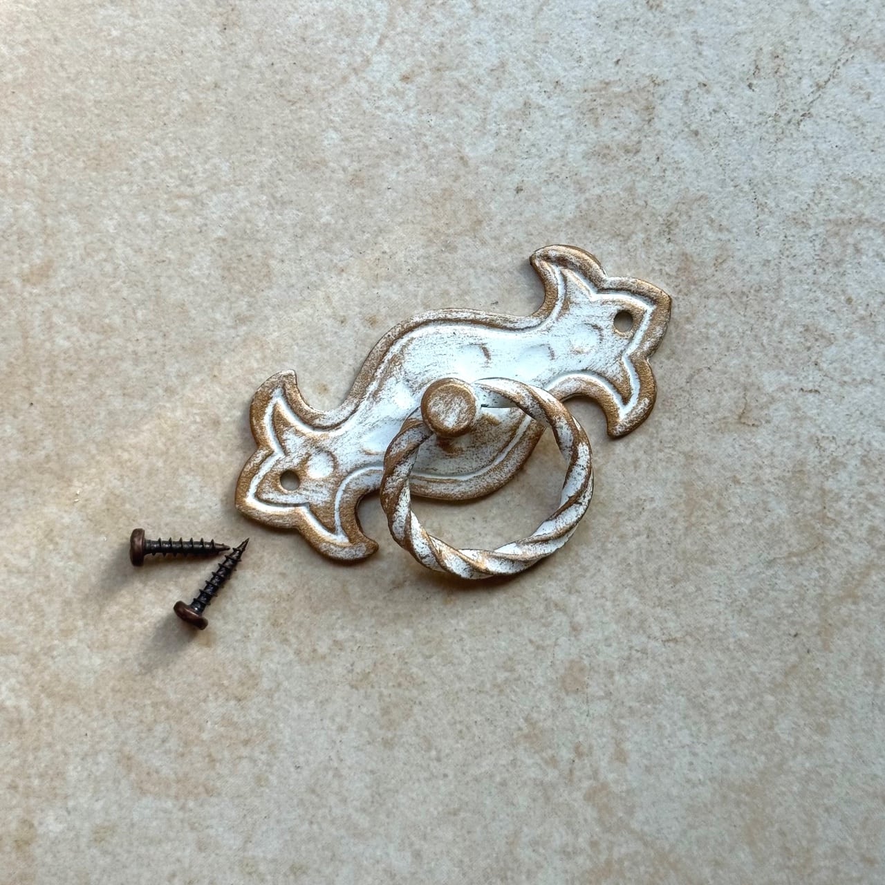 イタリア製 家具用リングノブ アンティーク・ゴールド・ホワイト 033AAn-Go-Wh