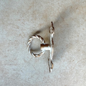 このリングノブは、イタリアのガルブセラ社mの製品で、アンティーク・ゴールド・ホワイトの美しい仕上げが特徴です。独特の雰囲気を伴った優雅なデザインが魅力です。アンティーク・ゴールドとホワイトの美しい組み合わせは、家具に上品なアクセントを添え、ヨーロッパ調のスタイルにぴったりです。