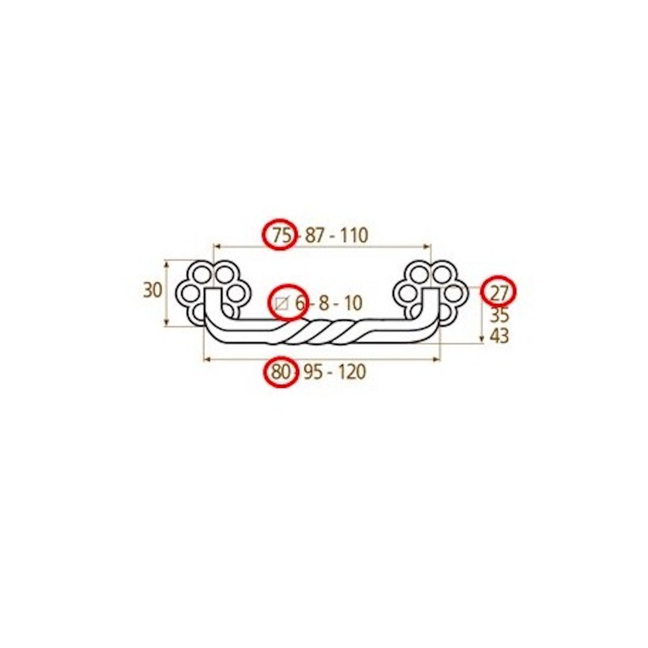 この引出し・家具用取手は、フランス製で、持ち手にはねじりが施されており、台座の形状もかわいらしいデザインが特徴です。また、金属部分は「鉄・くろ鉄仕上げ」で、ナチュラルかつ温かみのある雰囲気を醸し出します。モダンからクラシックなスタイルまで、幅広いインテリアにマッチします。