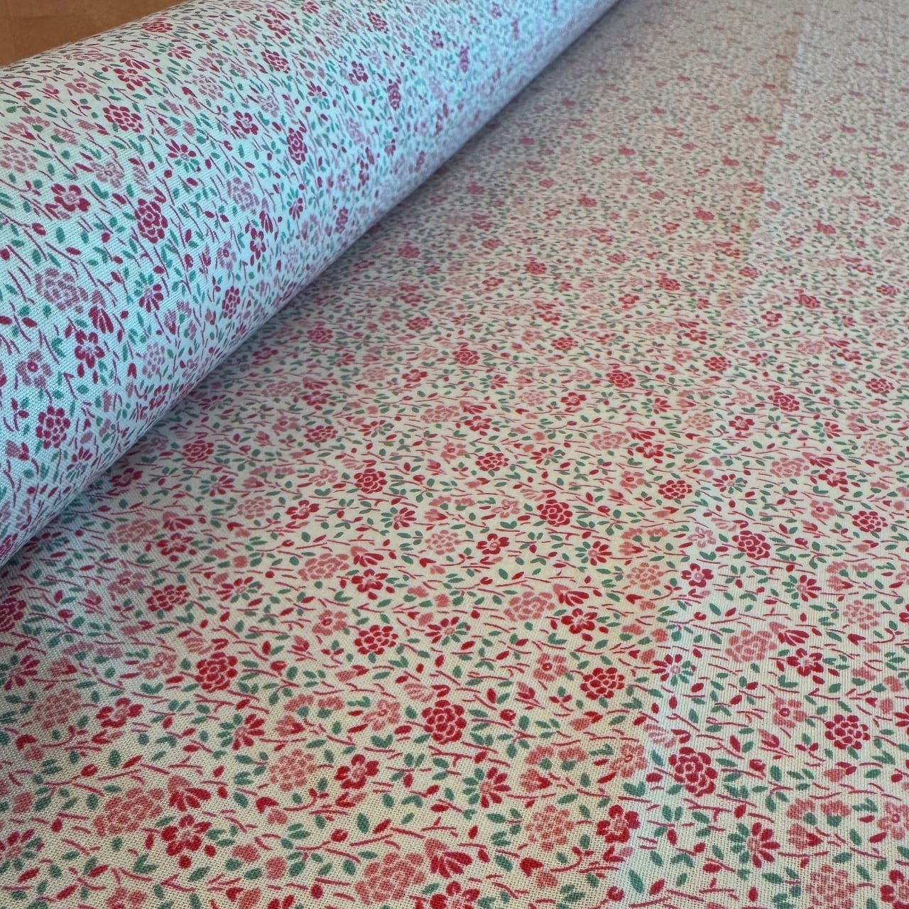 ローズや小花の繊細なパターンが上品に咲き誇り、淡いピンクとターコイズの彩りが爽やかな印象を添えます。