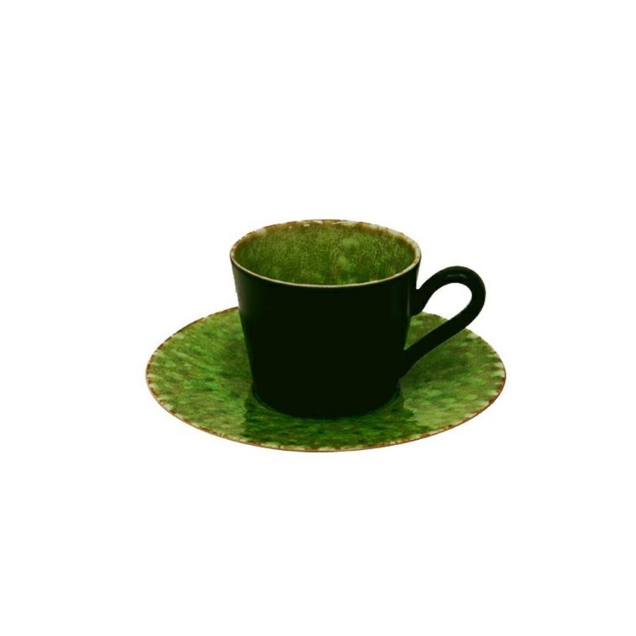 カップ単体で見ると、内側の透明感のある緑色と、外側のマットな黒の色と質感のコントラストが美しく、ソーサーと組み合わてみると、ソーサー表面の緑色と、カップ外側のマットな黒のコントラストが楽しめる、いろんな角度からの見た目で楽しい気持ちにさせてくれるアイテムです。