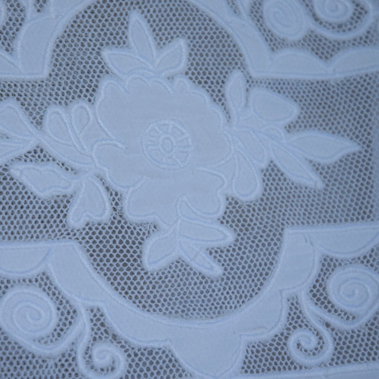 非常に柔らかで軽やかなリネンガーゼは、心地よい風を通しつつ、適度に日差しを遮ることができるため、居心地の良い空間を実現します。刺繍の繊細なデザインが、光が差し込むと美しい陰影を生み出し、温かみのある印象を与えます。