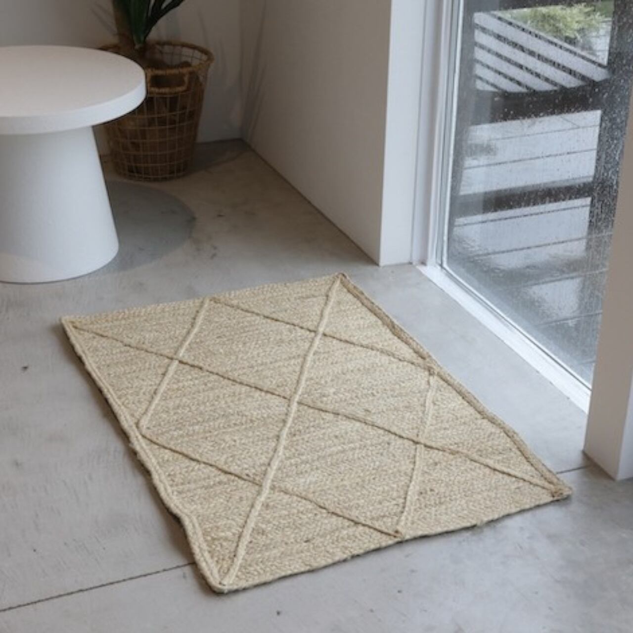 自然素材であるジュートを使ったこのマットは、シンプルで洗練されたデザインが特徴です。おしゃれなインテリアに自然な温かさをプラスしてくれるこのマットは、お部屋の雰囲気をより快適に演出します。
