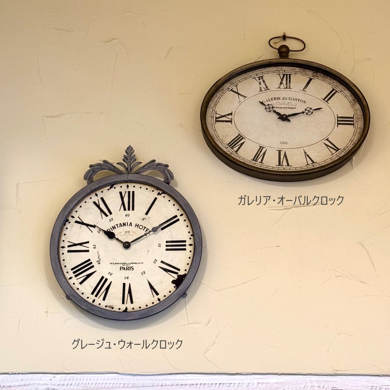 グレージュ・ウォールクロックは、ロマンティックな雰囲気を漂わせるフレンチテイストの掛時計です。グレイッシュなカラーが魅力を引き立て、どんなインテリアにも優雅に調和します。